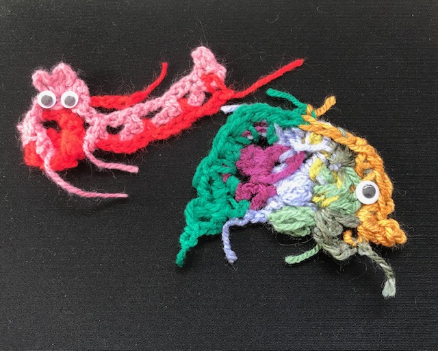 Instead of using the brilliant and inspiring term ‘SCRUMBLE’ (originators Sylvia Cosh and James Walters) I am calling it the LATCH PATCH. The reason for this is I use a latch hook instead of a traditional crochet hook. I believe it is so much easier to use… don’t believe me? Watch six year old Lulu, on my facebook page making a simple chain in minutes. Latch patches or crochet scrumbles can be taught in the same way with a latch hook.