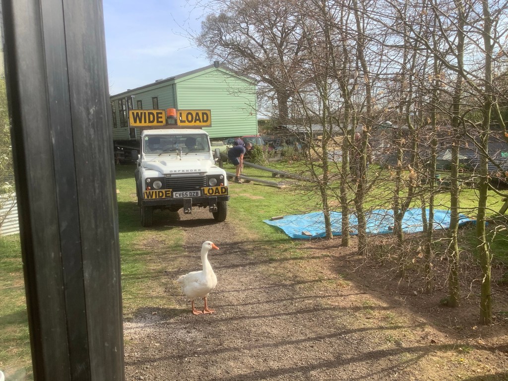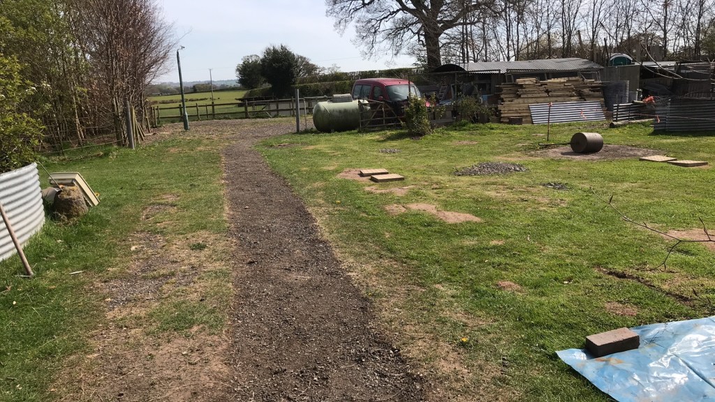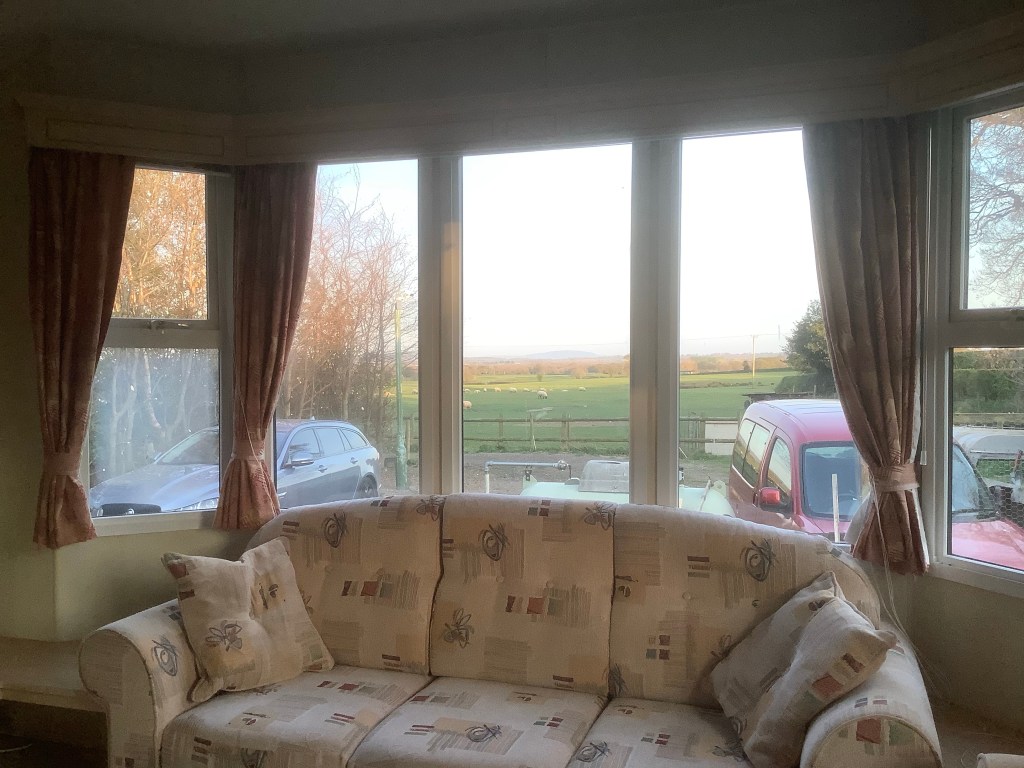 Nobby, Lucy and the boys stayed over the following weekend and put in the decking and the steps. It’s the 8th May 2021 , a very rainy day. This next photo was taken from the bus window.