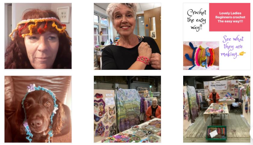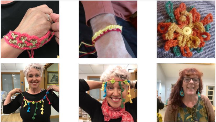 In the Uk we are trying to get back to some kind of normal. My first class has now had three sessions at the Severn Hospice with some lovely ladies who are absolute crochet beginners. They are following the new idea of just using two stitches to make things. These are chain and slip stitch, although some have snook in the bullion stitch too because it is such a fun stitch to do and has so much texture. We are having great fun experimenting with this way forward and I love how they surprise me with their work!