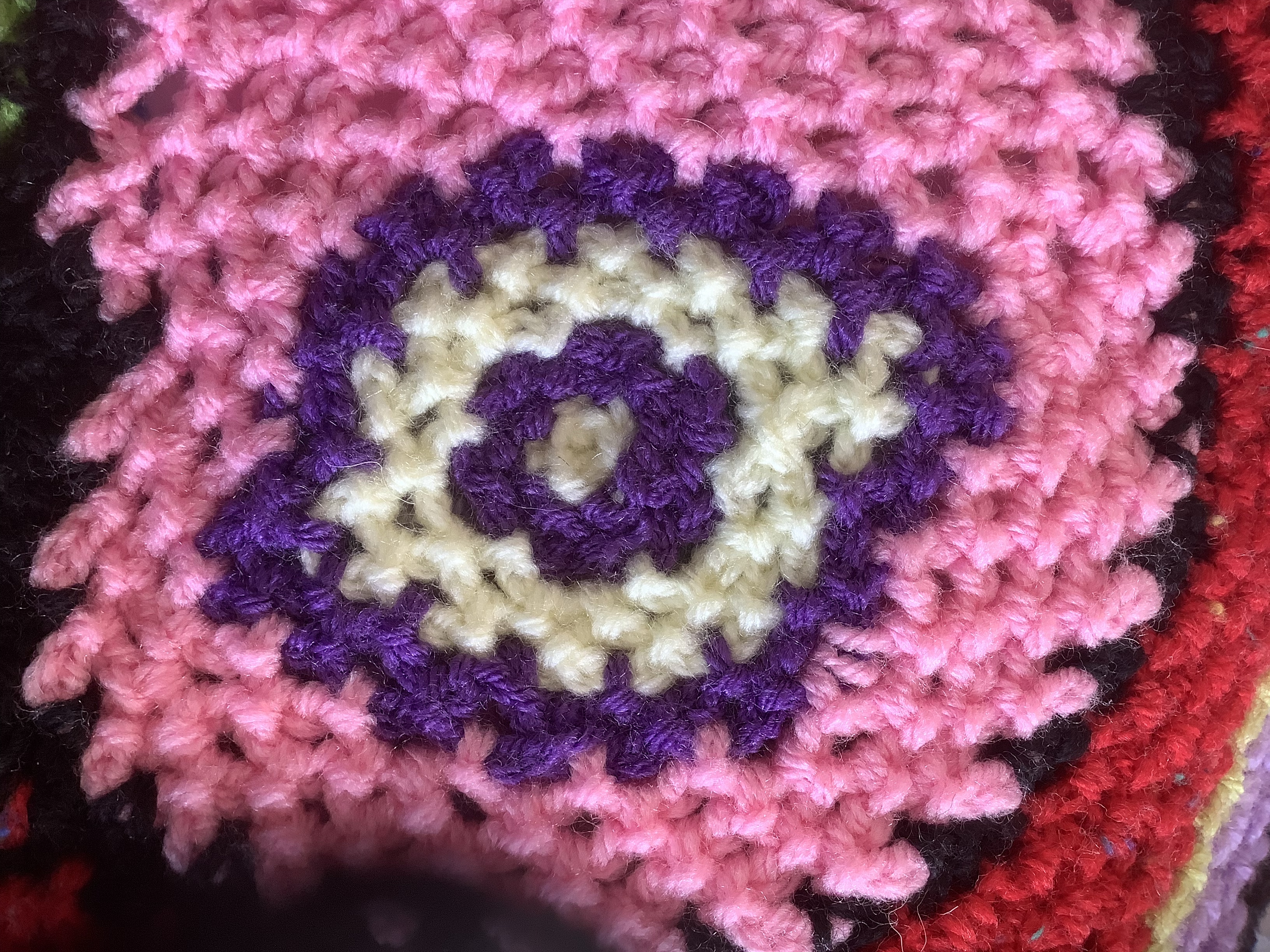 A flower brooch Take a look at my many resources including a book on Amazon, a Youtube channel with tutorials and a community of like minded latch hook crocheters on facebook!